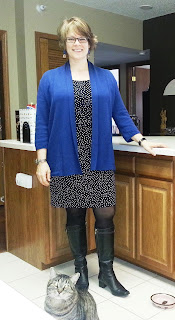 The next day found me back at work, and I wore my new Ann Taylor polka-dot jersey dress. Still cool enough then to wear tights and boots, but it is 80 degrees today.